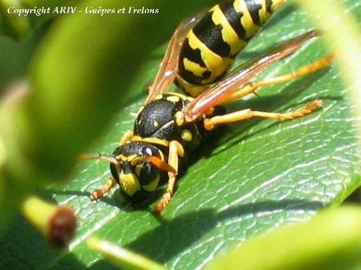 Ouvrière du poliste gaulois Polistes dominulus faisant sa toilette au soleil