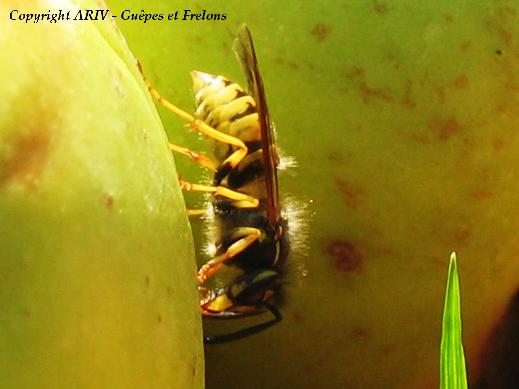 Ouvrière de la guêpe commune Vespula vulgaris se nourrissant sur une pomme
